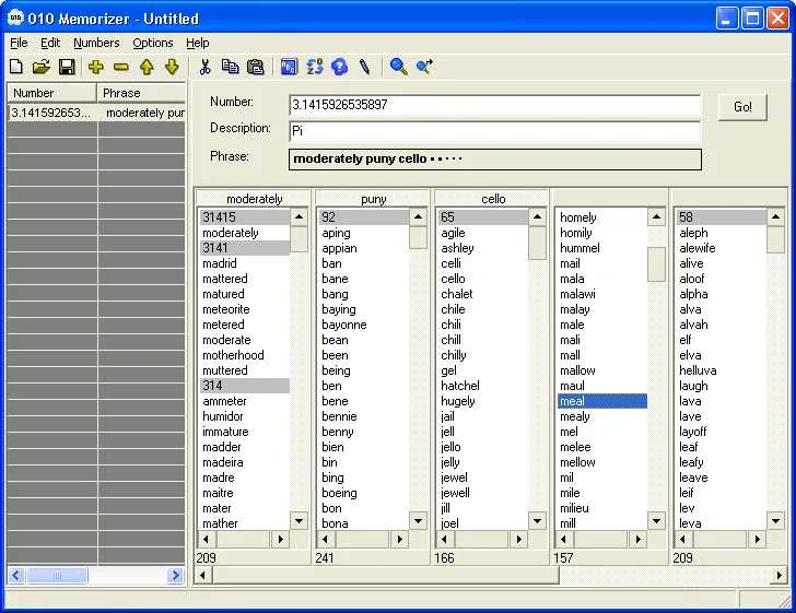 A freeware tool that helps you memorize numbers by converting them into vivid words or phrases using the phonetic Major System.