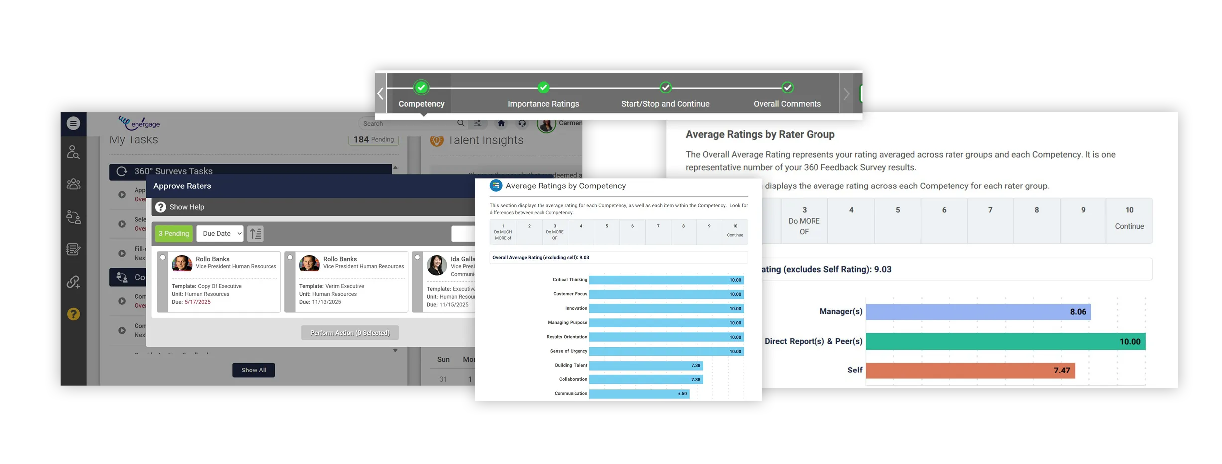 Energage 360 Surveys is a feedback platform designed to collect structured, confidential input from multiple perspectives, including managers, peers, direct reports, and self‑assessments. It focuses on evaluating behaviors, competencies, and leadership effectiveness rather than overall engagement. The platform standardizes the 360‑degree feedback process by using consistent survey frameworks and reporting formats. Responses are aggregated to protect anonymity while providing individuals with clear insight into how their behaviors are perceived across different roles. Energage 360 Surveys is commonly used for leadership development, coaching, and personal growth initiatives. It emphasizes clarity, fairness, and actionable insight rather than performance scoring or compensation decisions.