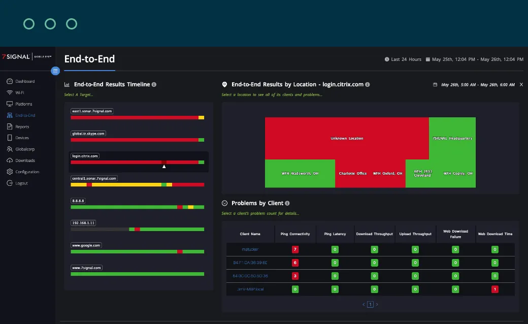 7SIGNAL Agents are patented, AI-powered SaaS applications that provide continuous, device-level visibility into digital experiences across wired and wireless networks. Installed on Windows, macOS, Linux, and Android devices, these agents perform both passive and active performance tests, feeding real-time telemetry into AI models. This enables IT teams to detect anomalies, accelerate root cause analysis, and proactively optimize network performance—whether in the office, at home, or on the go.