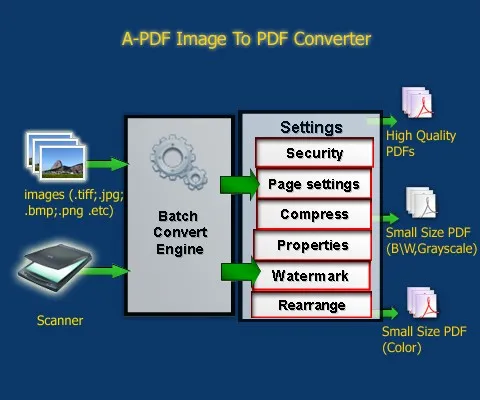 A-PDF Image to PDF is a desktop utility that converts various image formats, including scans and photos, into customizable PDF documents, offering image processing and flexible output.