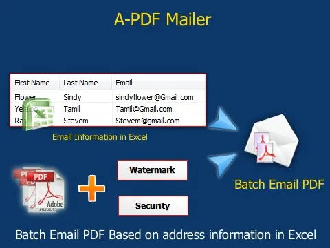 A-PDF Mailer is Windows-based batch email sender software designed to distribute personalized PDF documents with dynamic watermarks to multiple recipients from an Excel list.