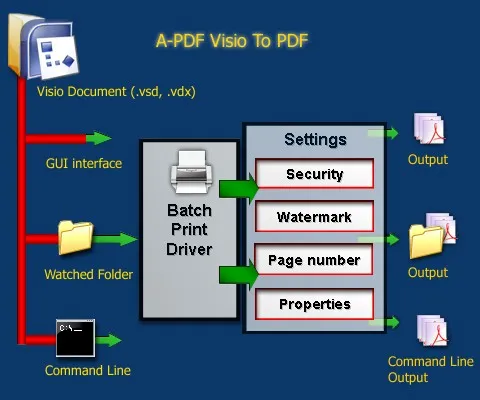 A-PDF Visio to PDF is a fast, affordable utility for batch converting Microsoft Visio files (.vsd, .vdx) into professional-quality PDF documents.