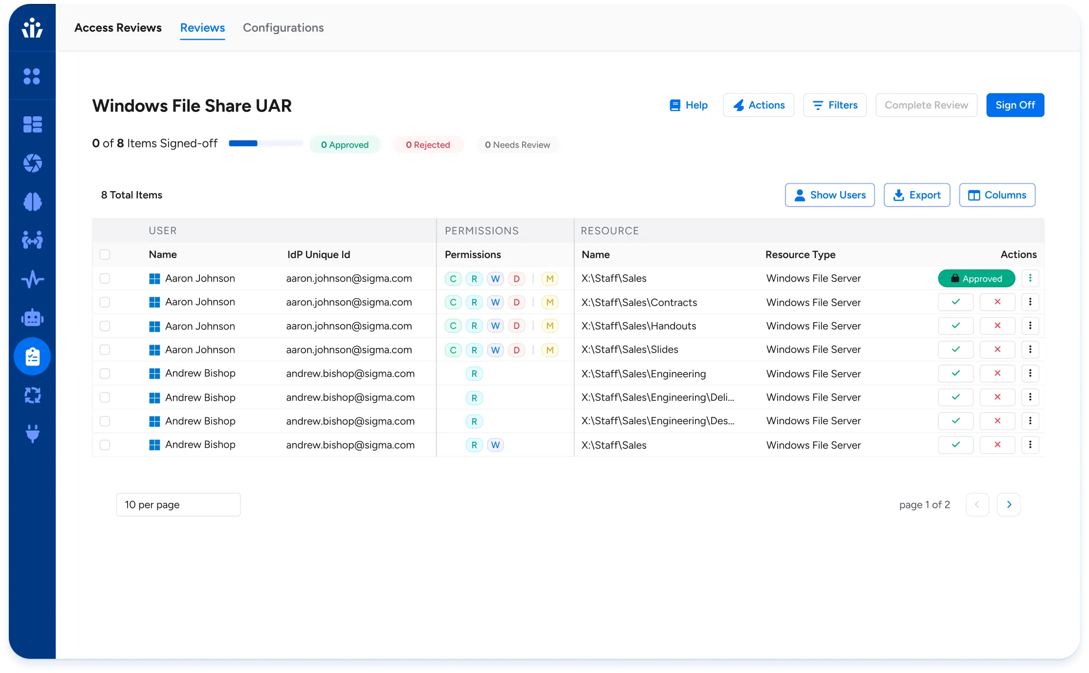 - Multi-level sign-off: Support for multiple reviewers who both must sign-off on an access review prior to completion and certification.