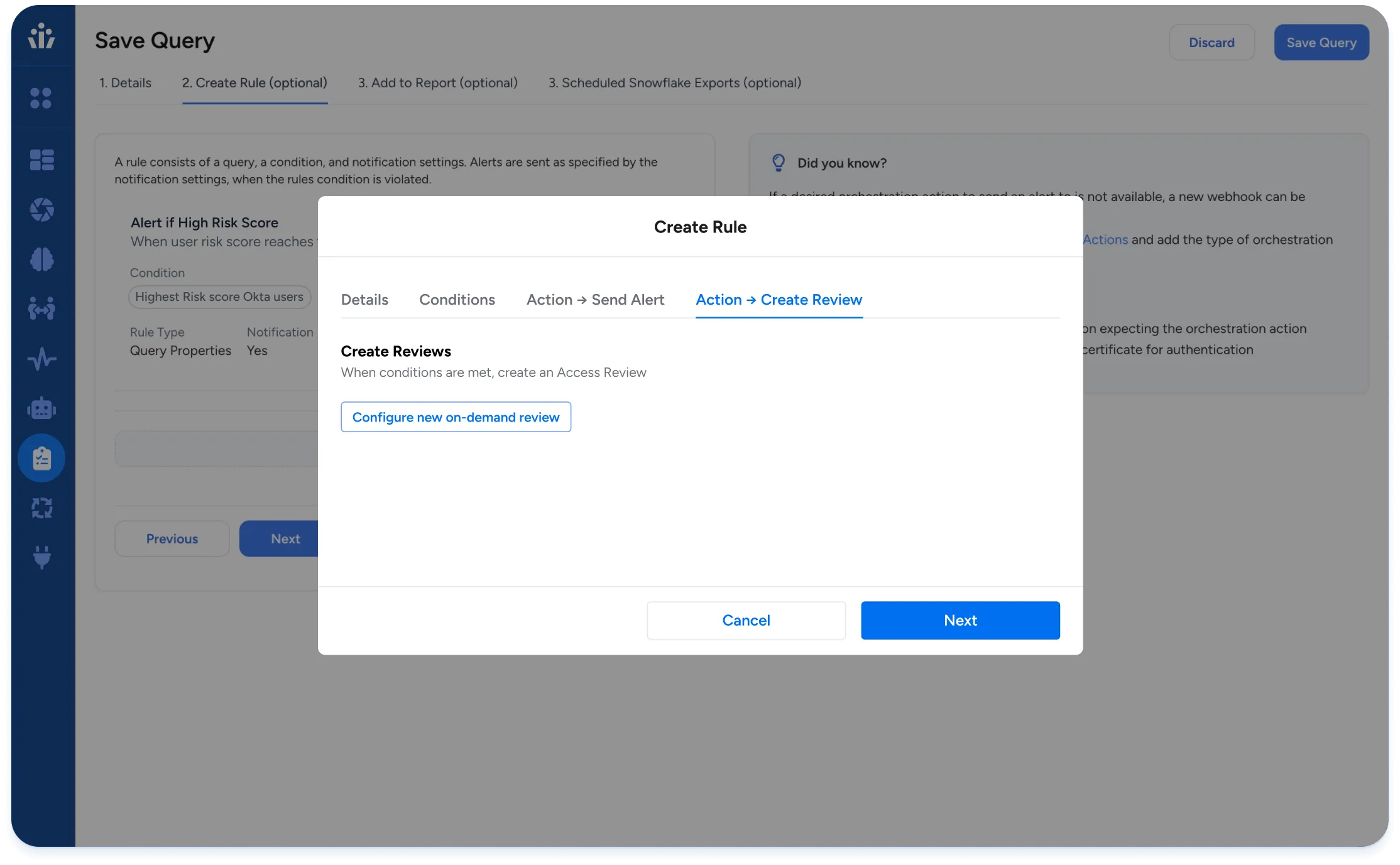 - Access Reviews: Create campaigns to review the permissions of any human or machine user, or for any resource, such as an S3 bucket or Snowflake table.