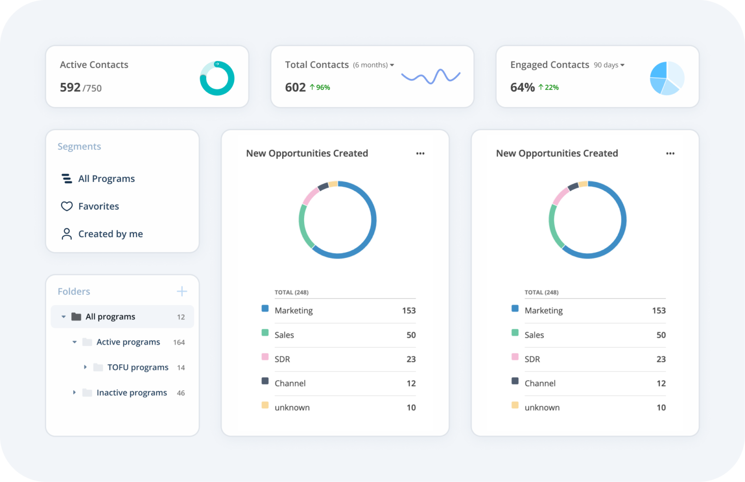- Landing Pages & Forms: Easy-to-build, engagement-focused assets with SEO and tracking capabilities.
