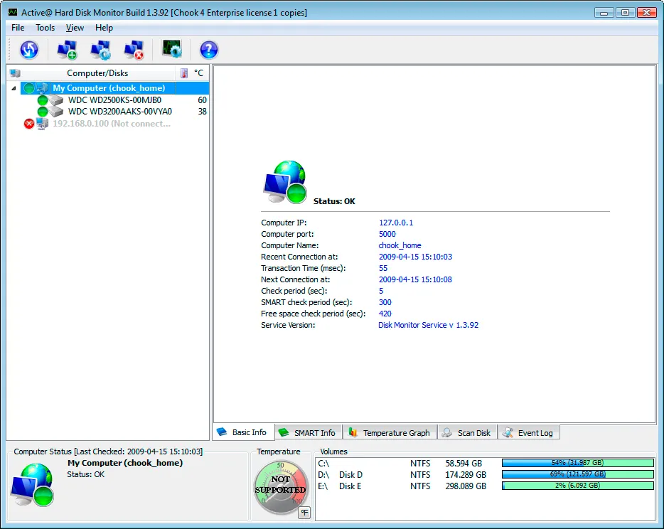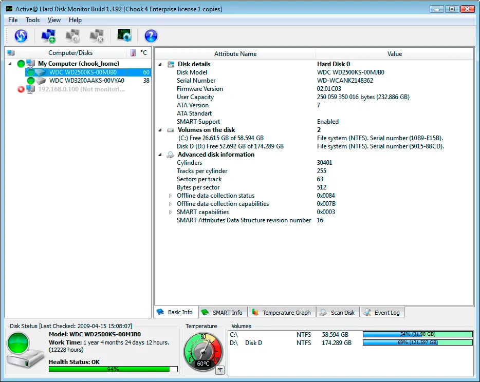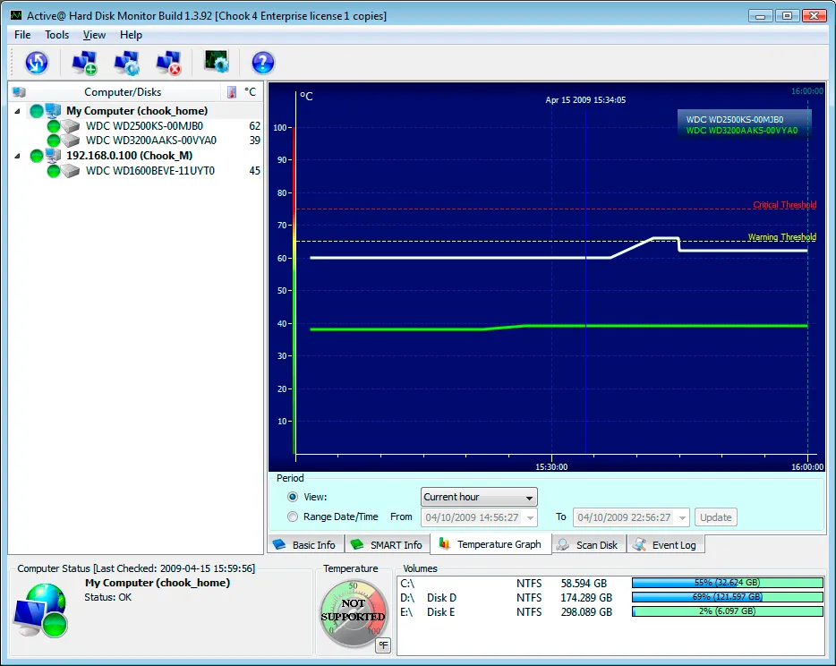 Easy to use user interface makes a hard disk monitoring a straightforward task