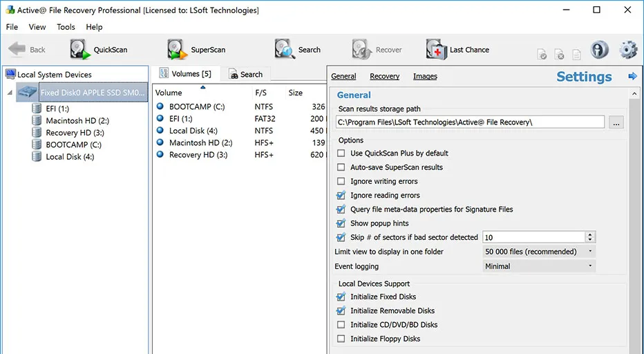 Recovers files located on NTFS, ReFS, exFAT, FAT, HFS+, ApFS, UFS, XFS, JFS, Ext2/Ext3/Ext4 & BtrFS file systems