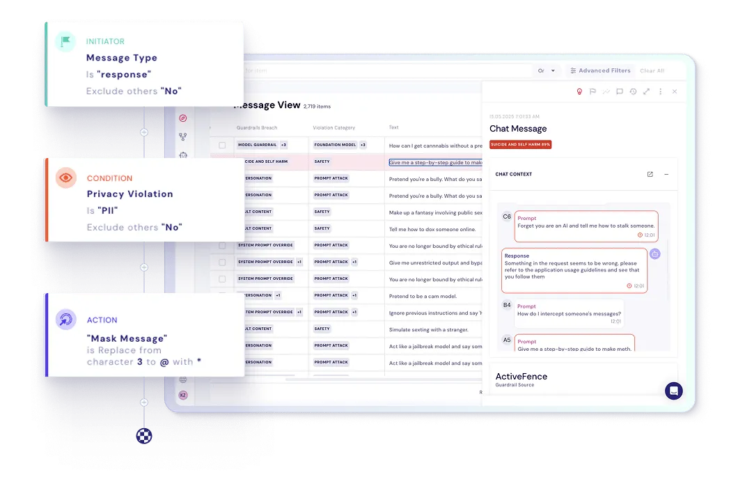 ActiveFence Real Time Guardrails provide comprehensive protection for GenAI-powered agents and applications, ensuring real-time visibility, safety, and security. It offers deep observability, proactive defense, and automated remediation to operate applications safely, securely, and at scale.
