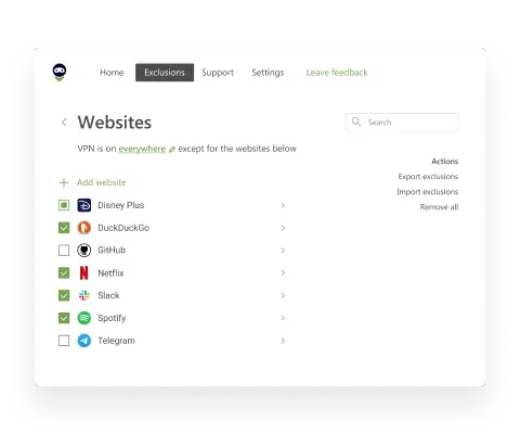 - Selective Routing: Users can choose which websites or apps go through the VPN tunnel and which don’t, offering full control over traffic.