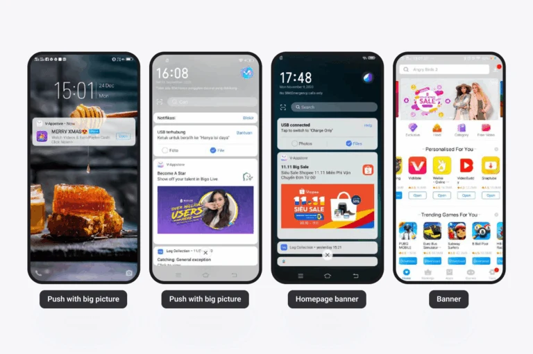 Diverse Ad Formats & Monetization Support for in-app ads, native placements, pre-installs, branded folders, and push notifications.
