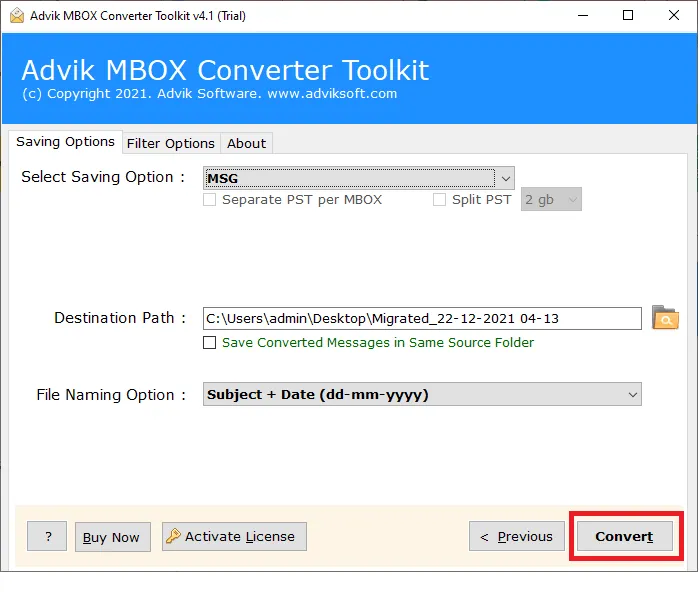 Batch and Selective Conversion Convert single or multiple MBOX files to MSG format in one operation.