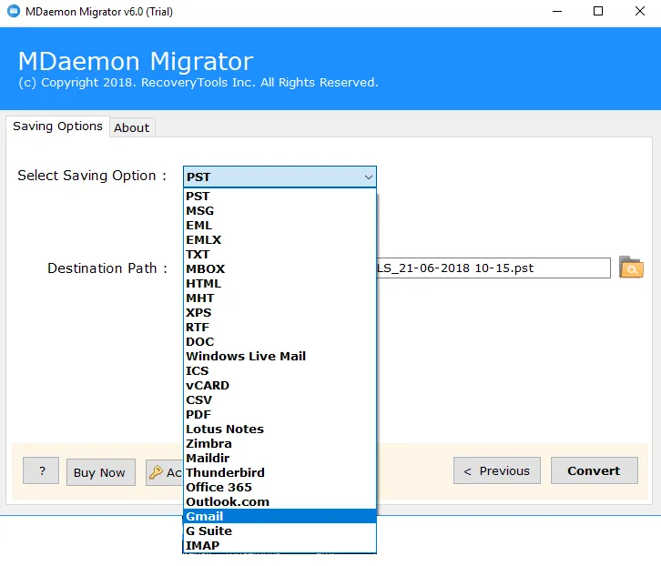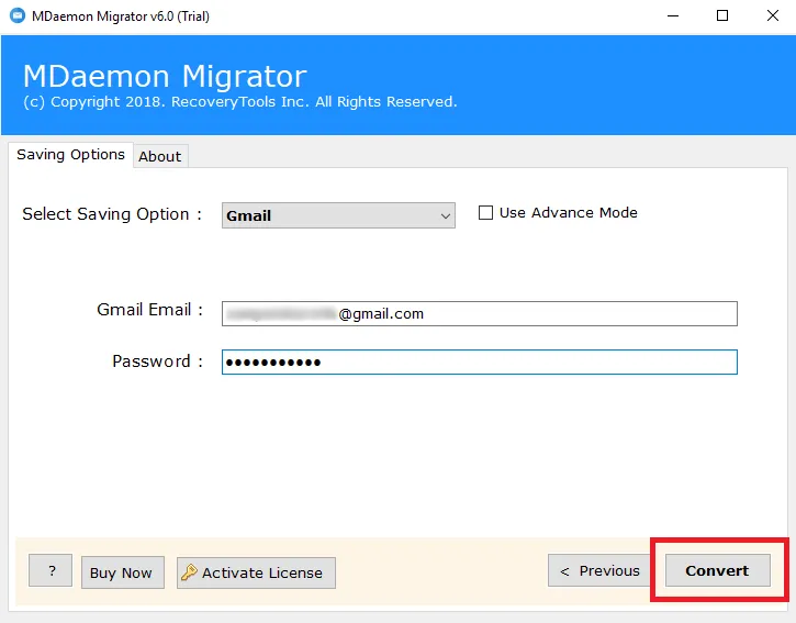 Desktop software to transfer emails, contacts, and calendars from MDaemon to Gmail or G Suite accounts with advanced filtering options.
