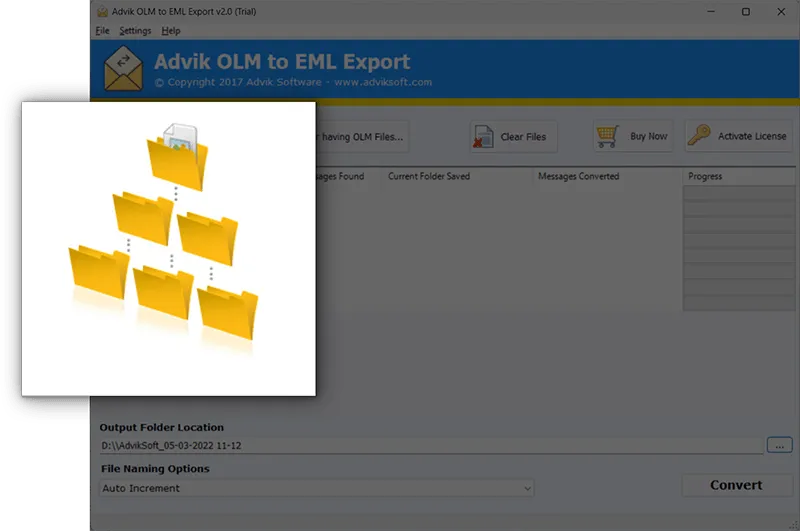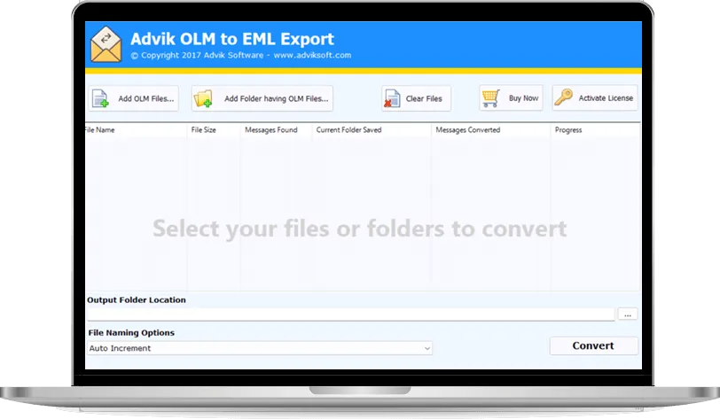 Batch OLM to EML Conversion Converts single or multiple OLM files to EML format in one operation.
