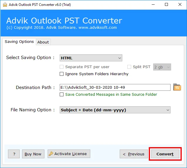 Batch Conversion Convert multiple or large PST files to HTML format in one operation.