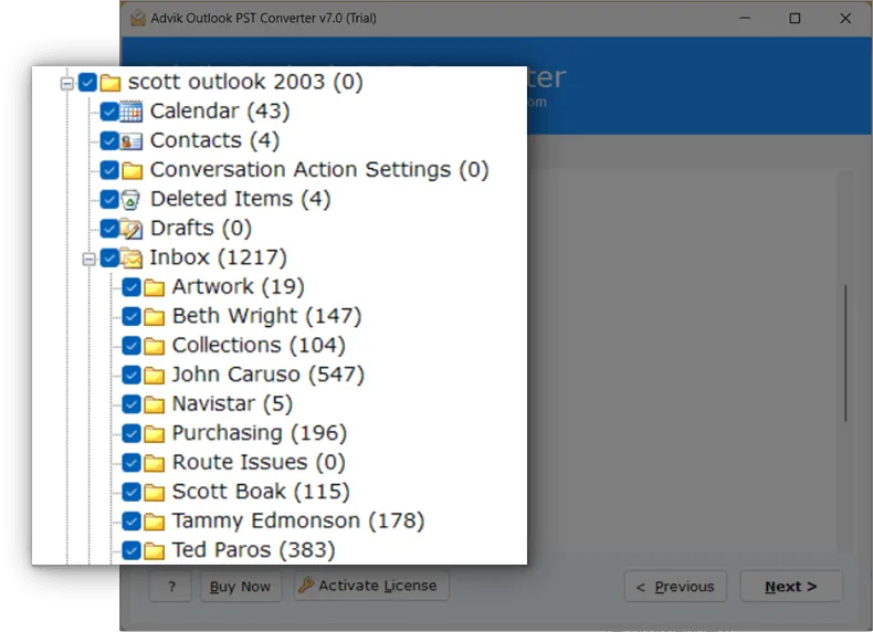 Preview and Selective Export View emails before conversion and choose specific items to export.