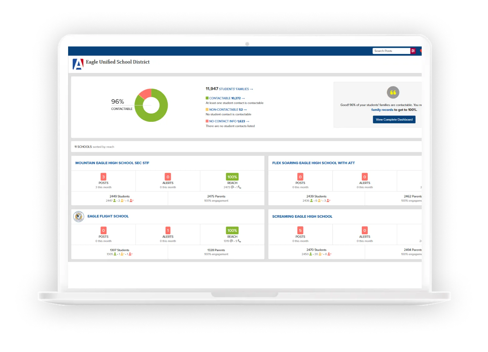 - Group Messaging: Send messages to specific groups by school, grade, or district level.