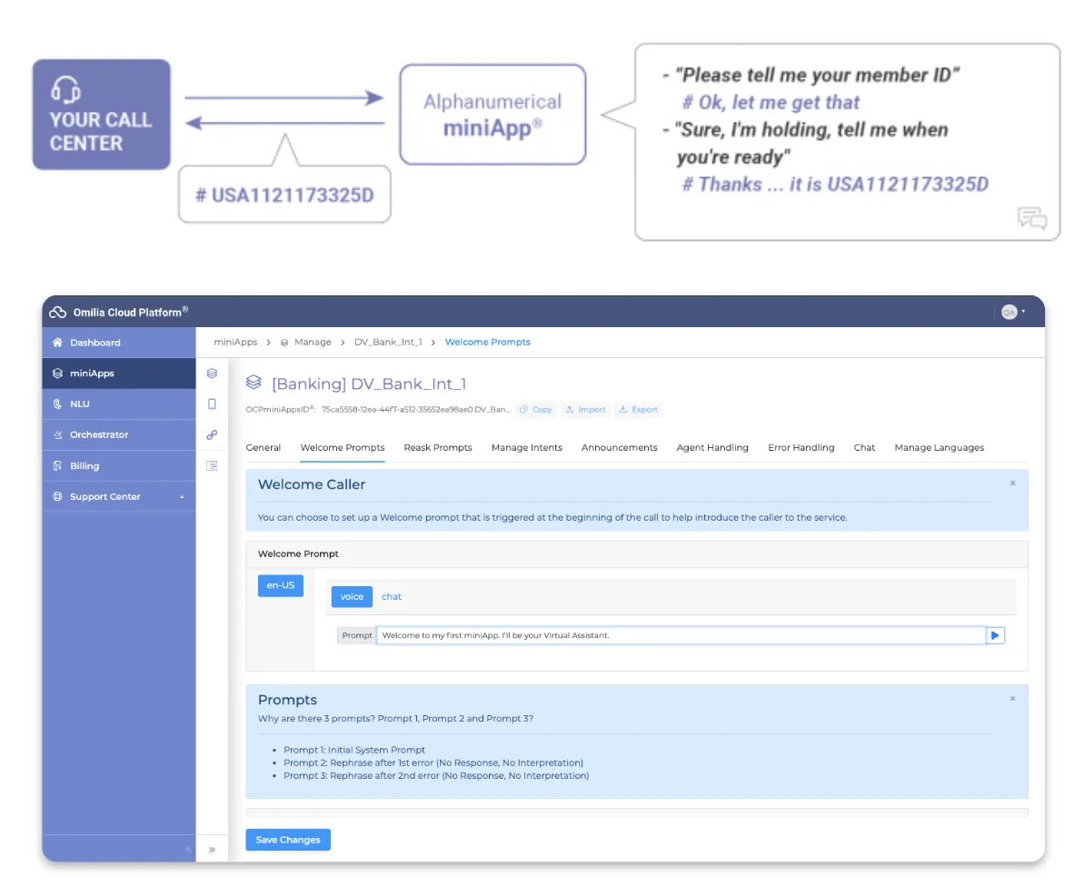 - **Omilia miniApps — Modular Execution Units: **Purpose-built, self-contained miniApps act as executable components that planners can dynamically invoke. miniApps enforce strict, observable boundaries for AI actions and enable different levels of autonomy depending on governance rules.
