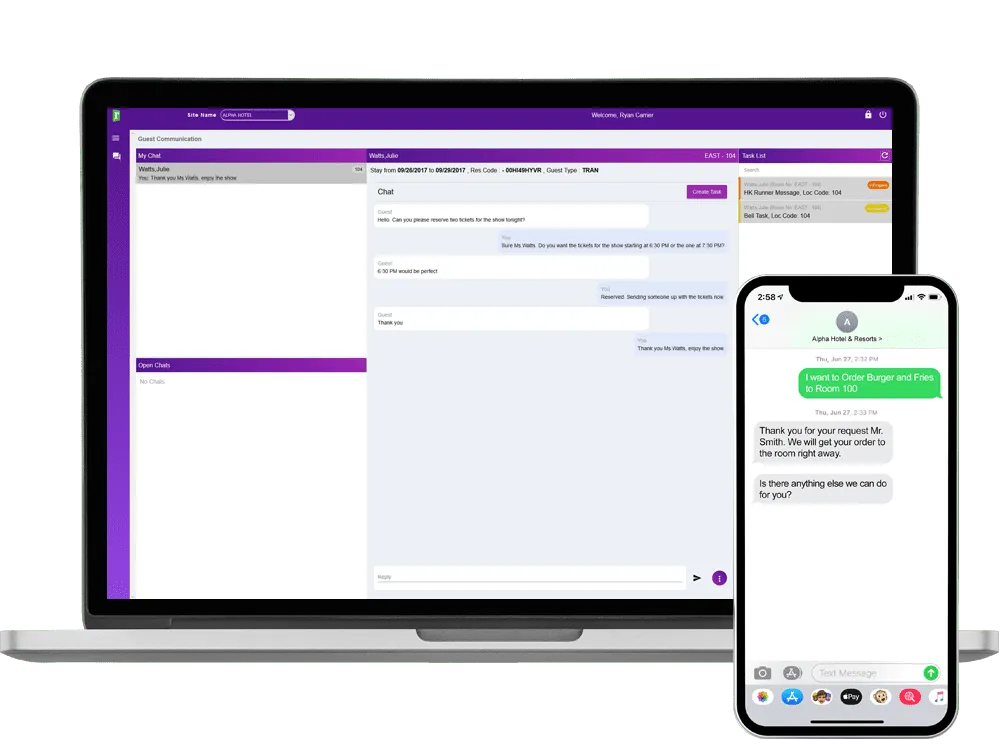 Service on time, every time, without over-stressing staff. Real-time texts between guests and service staff simplifies timing, tracking and satisfying requests. Assign and route service requests to a mobile-equipped team to save time and balance workloads. Minimize training time and protect brand standards through guided task instructions.