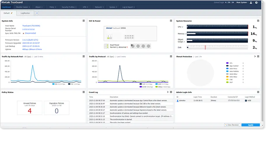 AhnLab OT Firewall is designed to detect and block malicious traffic at the OT network perimeter, ensuring secure communications and network segmentation.