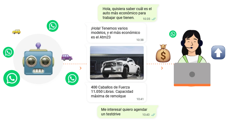 AtomChat’s AI Agents for the automotive industry automate customer engagement and sales via WhatsApp, helping dealerships and service centers increase vehicle sales, schedule maintenance, and respond to inquiries instantly. These agents qualify leads, personalize conversations, and connect prospects to advisors, boosting conversion and operational efficiency.
