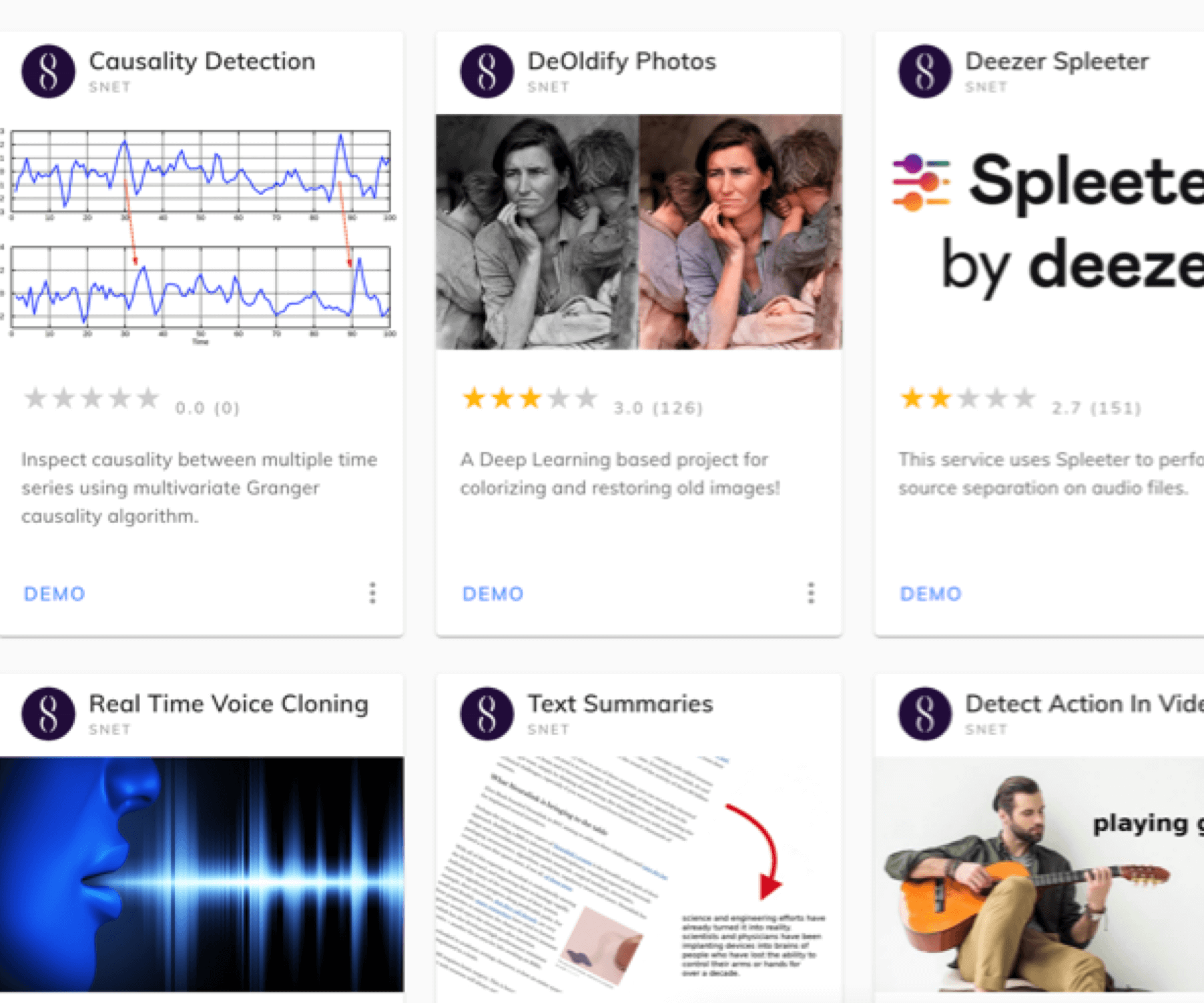 Explore a wide variety of AI services published by SNET and others. Easily find what you are looking for.