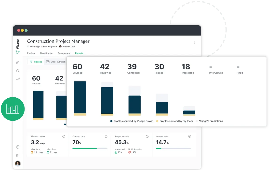 - Provides real-time insights into sourcing performance and candidate quality