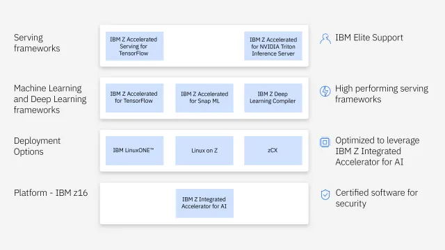 AI Toolkit for IBM Z and LinuxONE is a family of popular open-source AI frameworks with IBM Elite Support and adapted for IBM Z and IBM LinuxONE hardware.