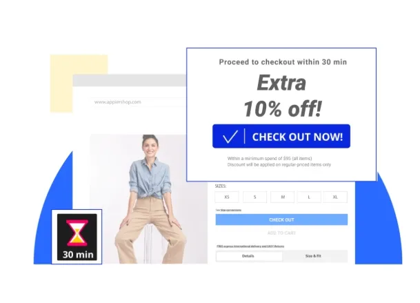 Target only hesitant shoppers who need the extra push to purchase. Save coupon cost on shoppers who are determined to buy or determined not to buy. Use a time-limited special incentive to give them the nudge they need at the right moment to check out.