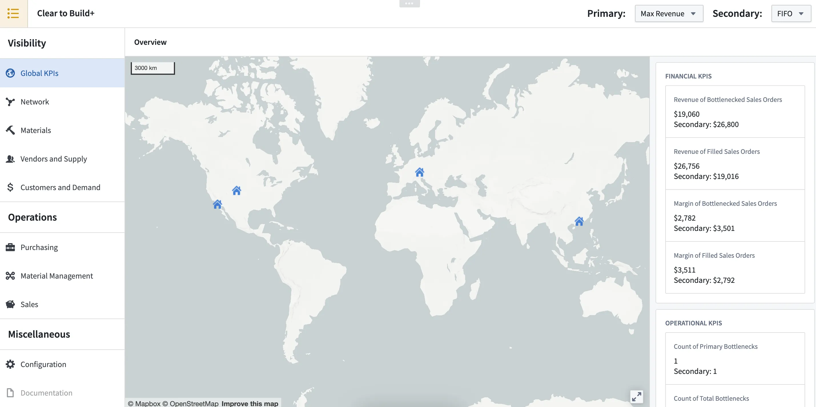 AIP Clear to Build enables teams to quickly evaluate positions across the entire supply chain for each product, product line, customer order and production order. Users leverage AIP to optimize allocation of scarce materials according to key business objectives, such as, profitability or customer satisfaction.