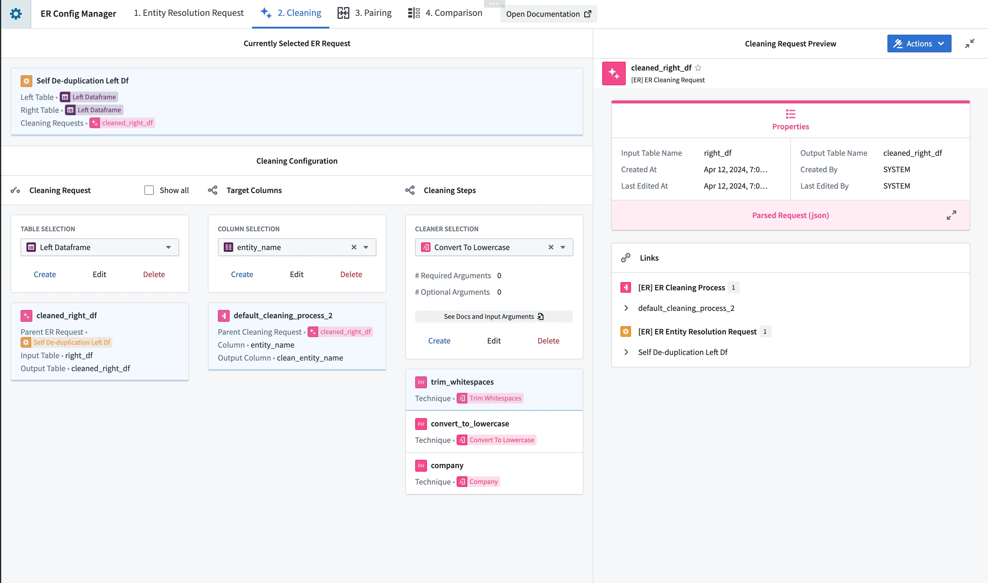 The framework allows users to tailor the user interface to their preferences using a provided template. They can select from a wide array of cleaning, pairing, and comparison techniques, or even develop custom techniques to meet their unique requirements. This level of full configurability is combined with the simplicity of an out-of-the-box solution.