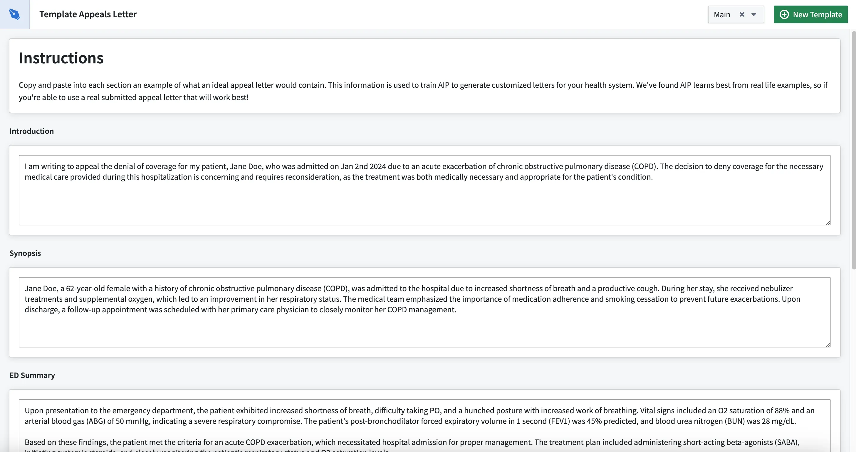 Case Managers employ AIP to (1) assist in validating and reviewing patients' charts to ascertain if documentation adequately supports the current level of care, and (2) generate draft claims documentation for insurance companies.