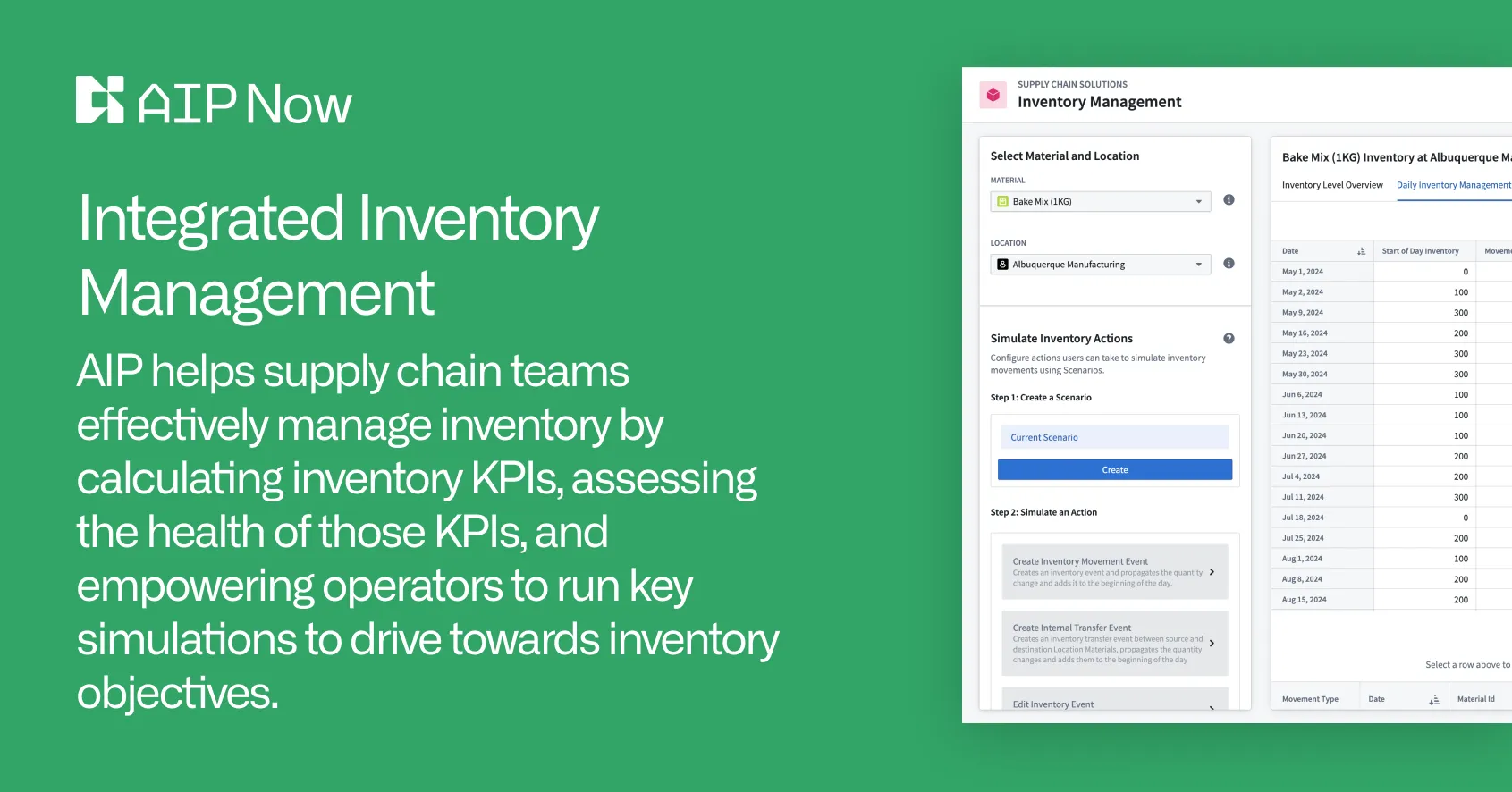AIP for Inventory Management, Visibility and SimulationPalantir