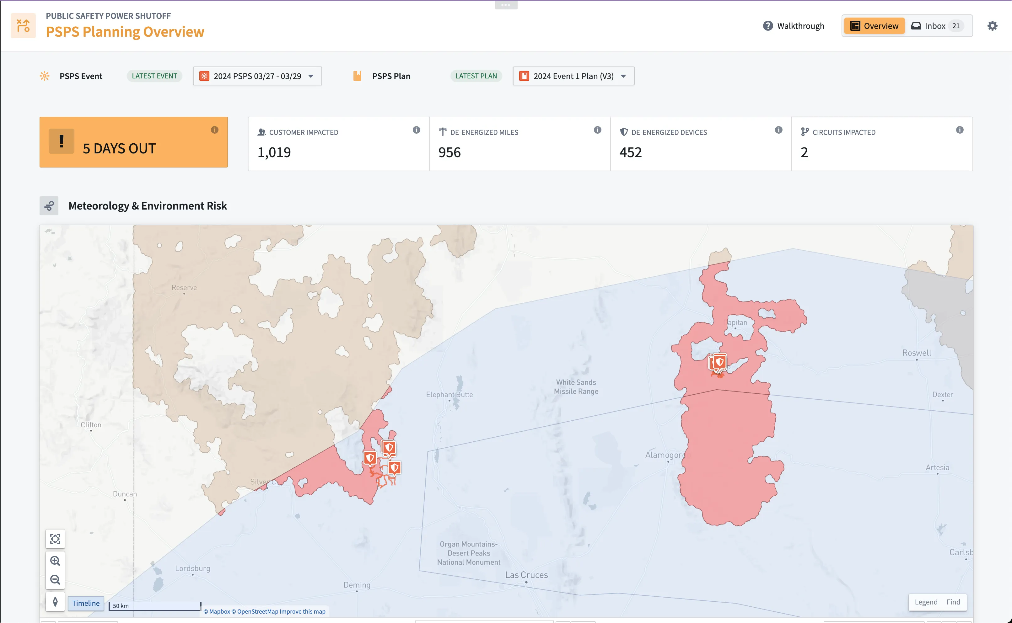 - Dynamic Updates: Continuously refine the PSPS scope, including which devices, circuits, and customers are affected, based on changes to weather conditions and other risk factors.