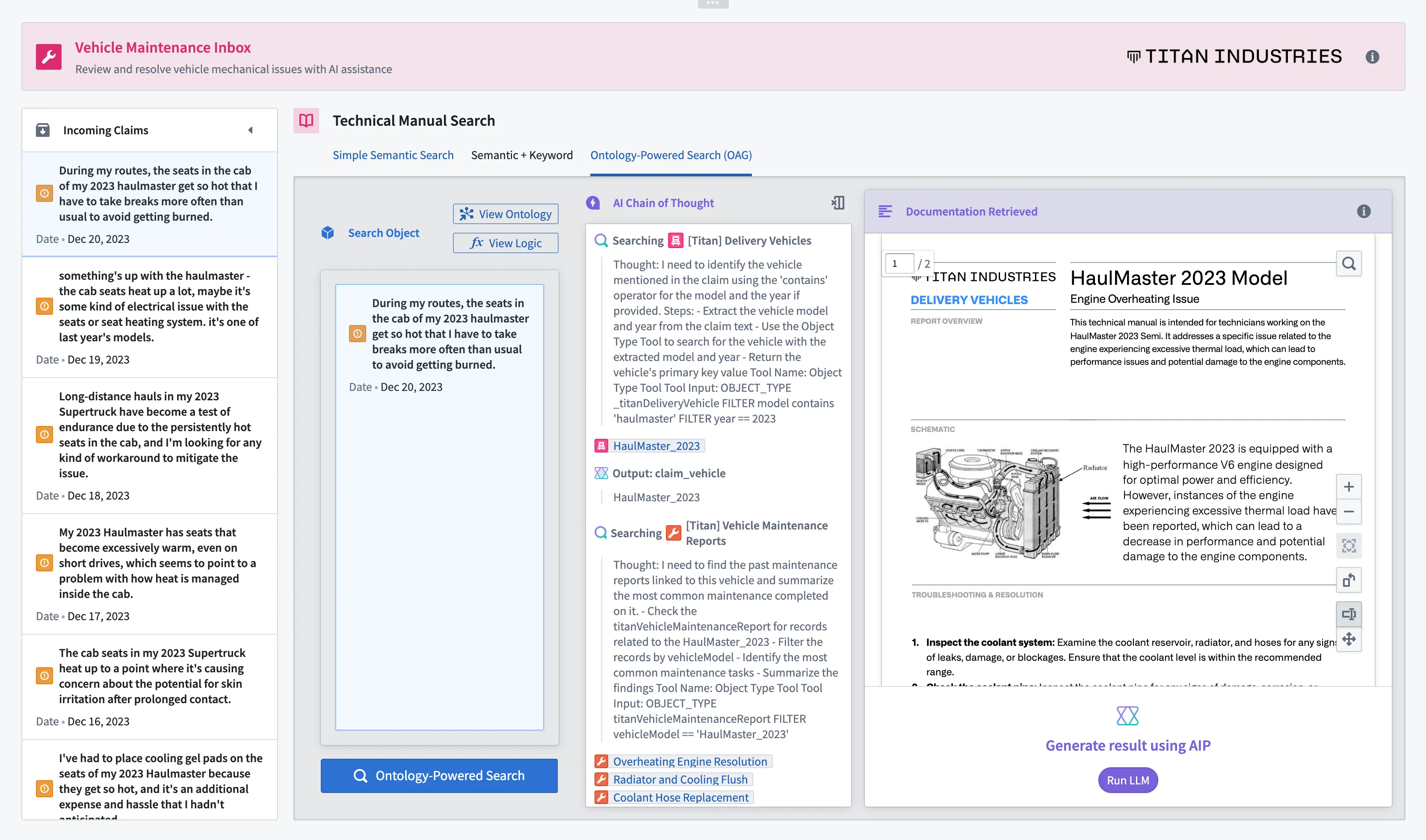 AIP empowers technicians to efficiently identify, triage, and resolve mechanical issues on assets.