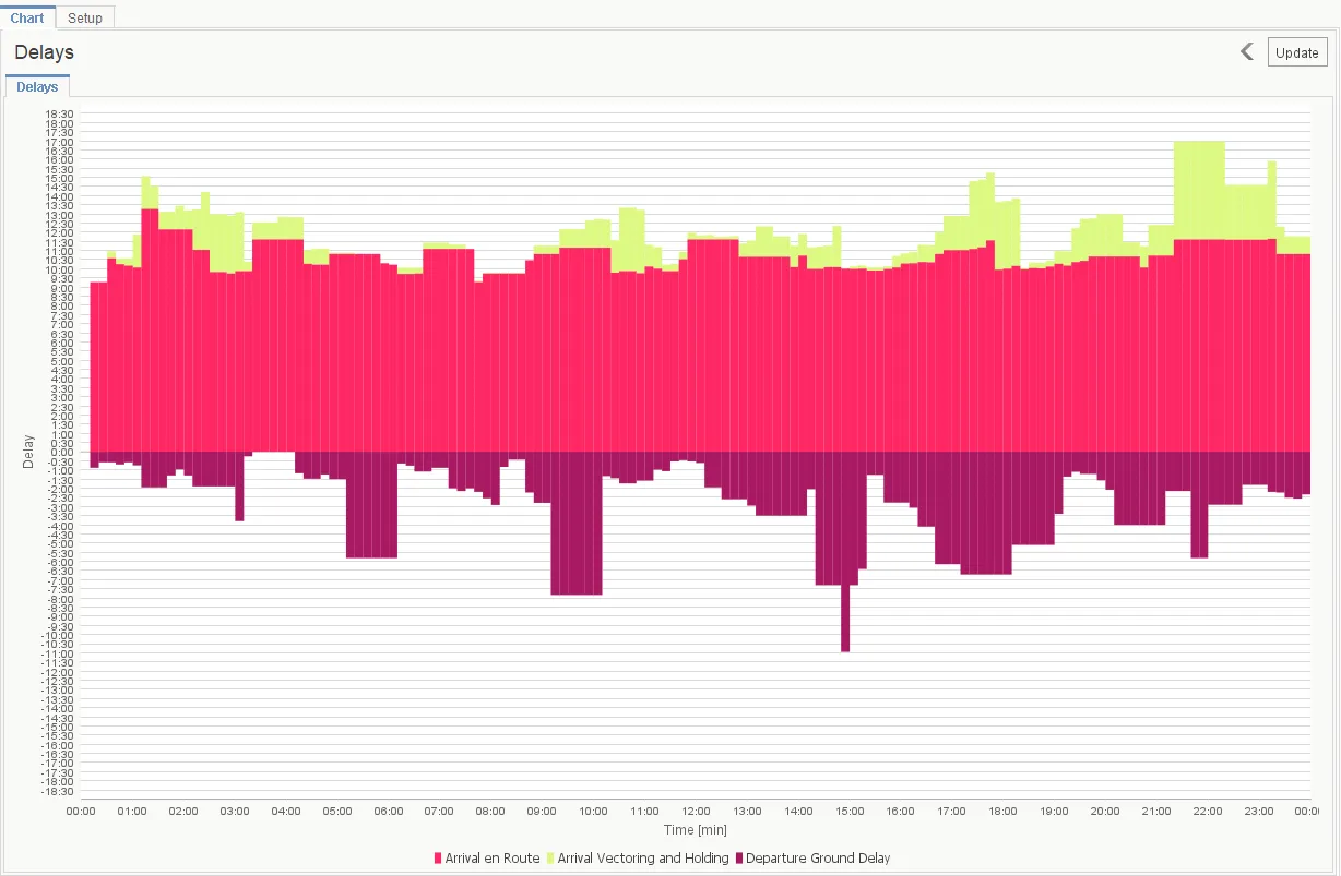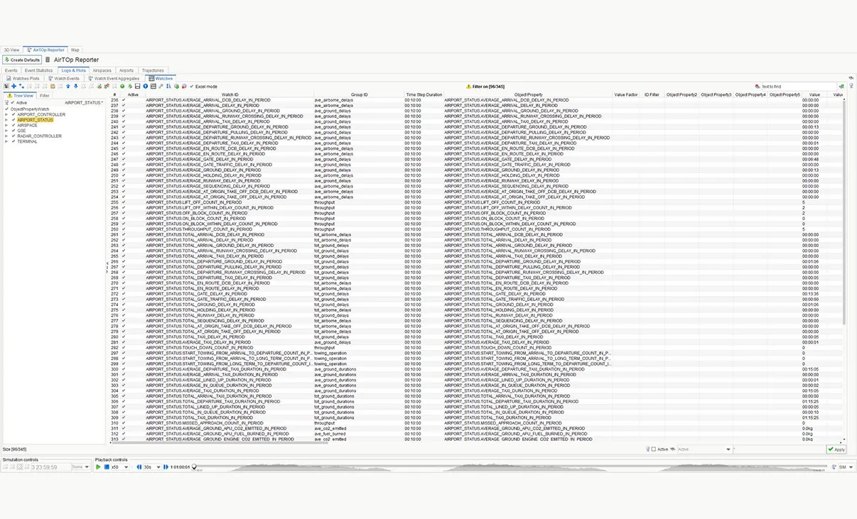 Built-in statistics per sector, flight, airport, or runway can be easily queried and exported (spreadsheet files, SQL databases) from AirTOP. The results of multiple simulation runs (that may include user-defined random variations) can be aggregated to provide statistically significant results.