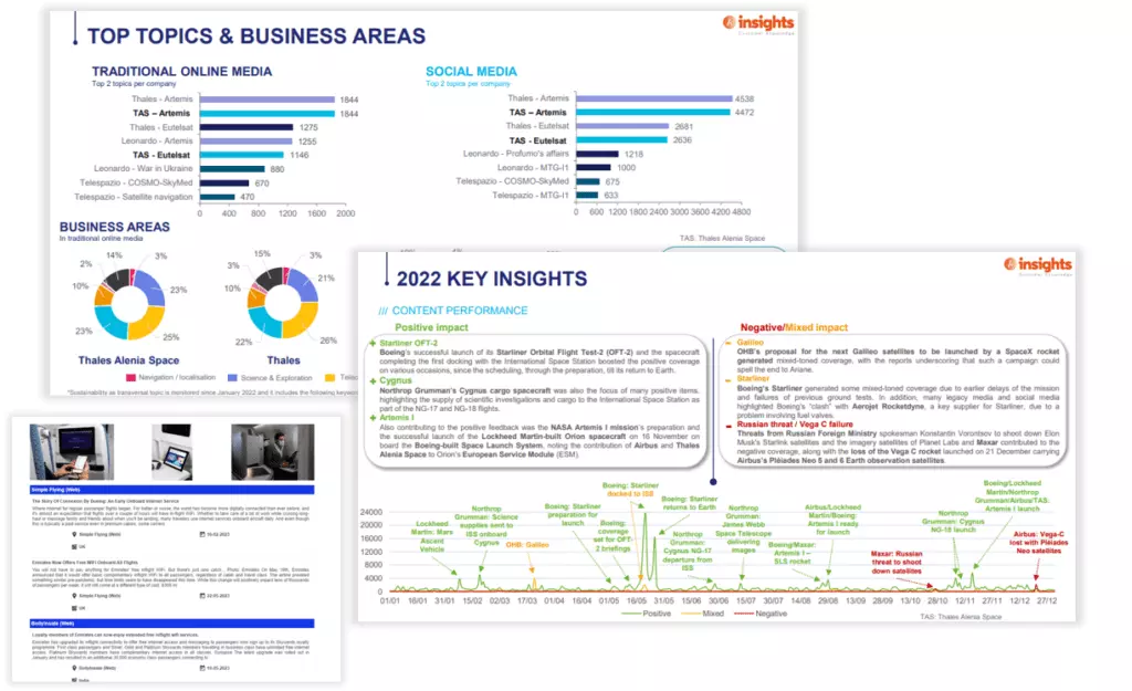 - Alerts on potentially sensitive subjects and substantial increases in topic volume to detect weak signals.