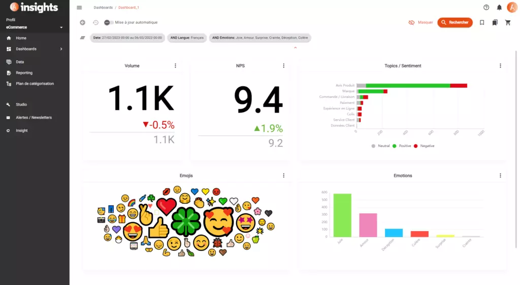 - Dynamic dashboards to track customer feedback in real time, monitor known topics, and identify emerging issues.
