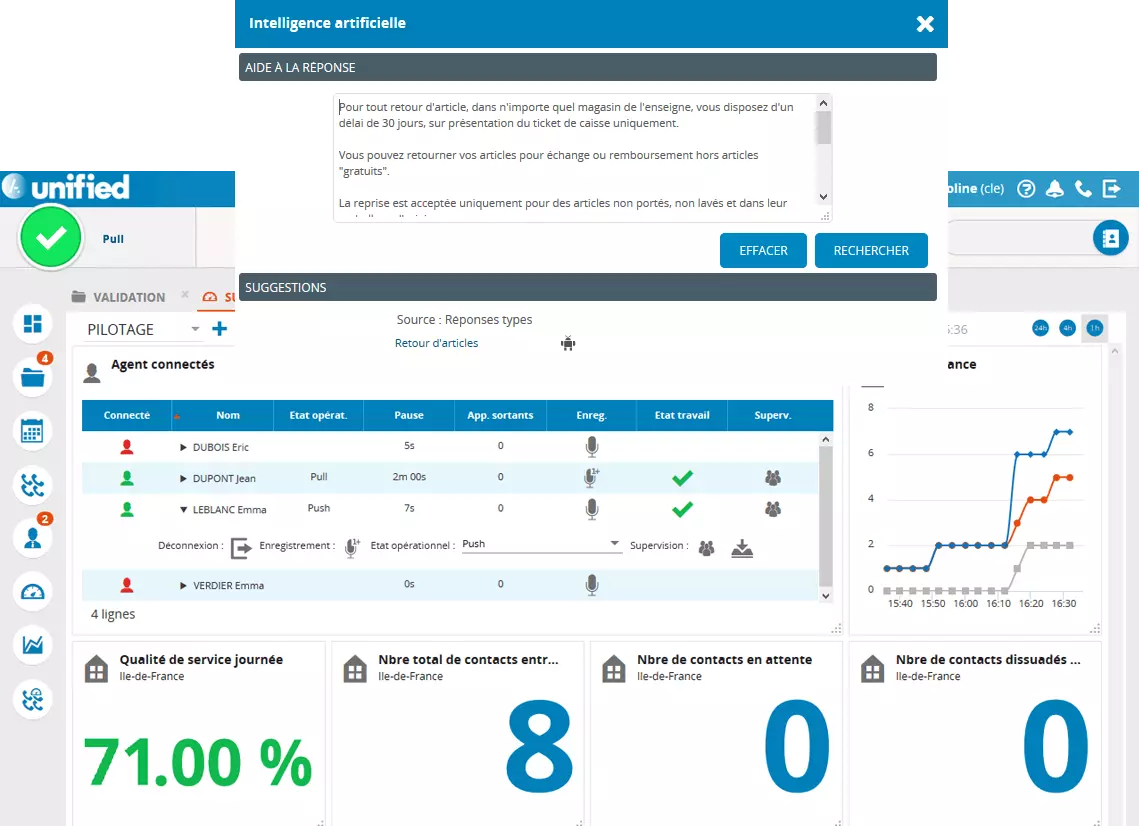 - Customizable dashboards and real-time supervisor indicators.