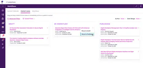 - Provides simple content management and publishing capabilities, allowing content managers to build and launch sites, supporting multiple content types (images, videos), and including content approval workflows, advanced analytics, and custom dashboards.