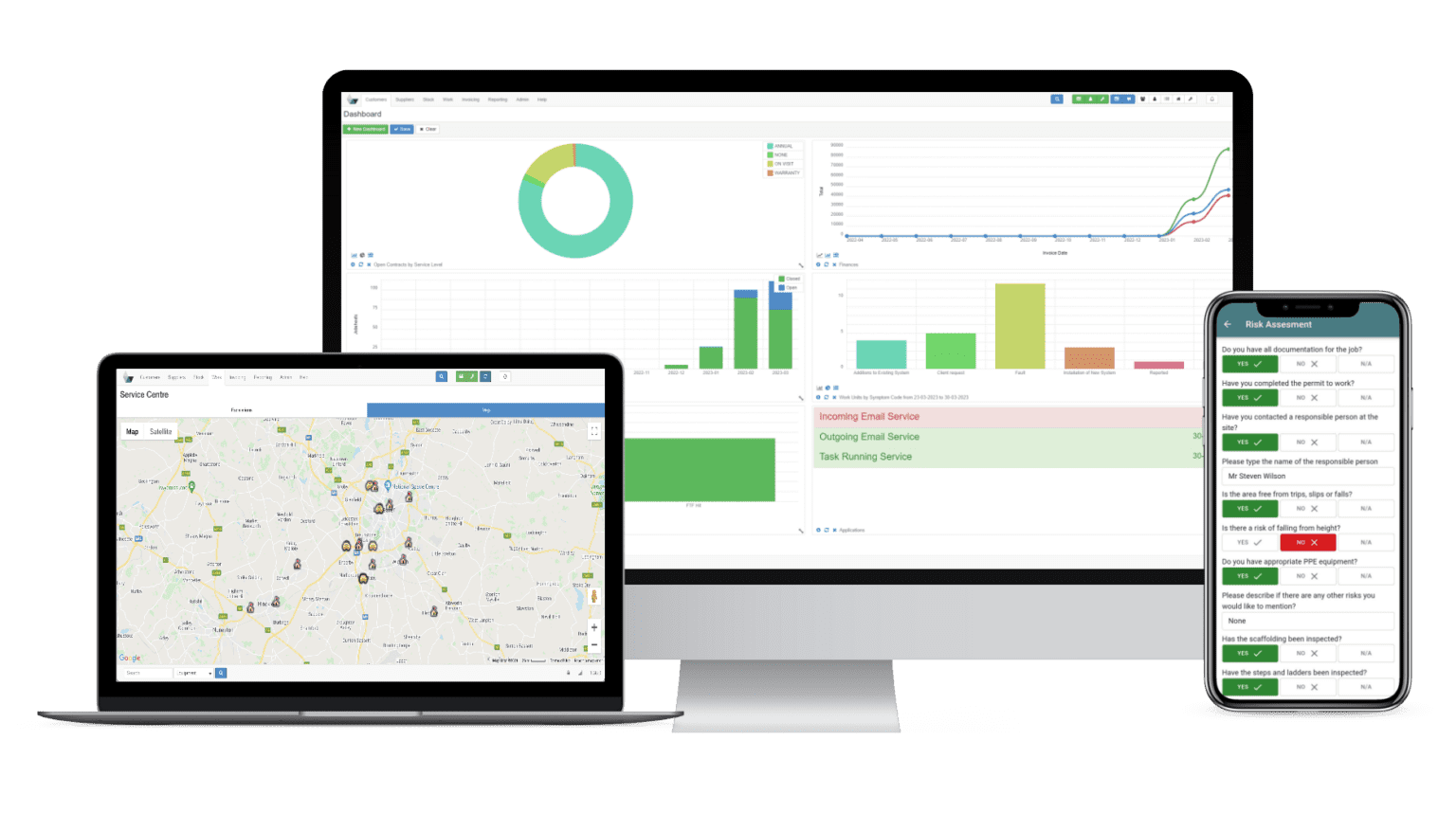 Designed to work on any device allows engineers to manage their days, book their own visits, see visit history, device listing and locations, order parts, capture images, and complete customisable forms. It’s also off-line capable for where the signal is poor or where internet connectivity is restricted.