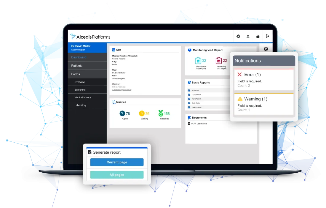 - Security & Compliance: Alcedis eCRF guarantees the highest level of security and compliance with international standards including ICH GCP, GAMP 5, GDPR, HIPAA, and FDA regulations.