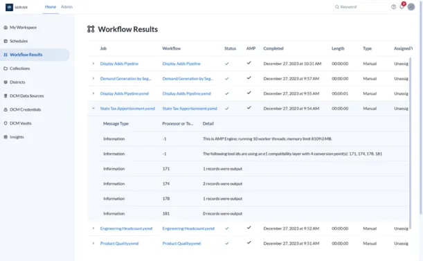 - Schedule analytic processing workflows to automatically deliver outcomes to reporting and visualization platforms.