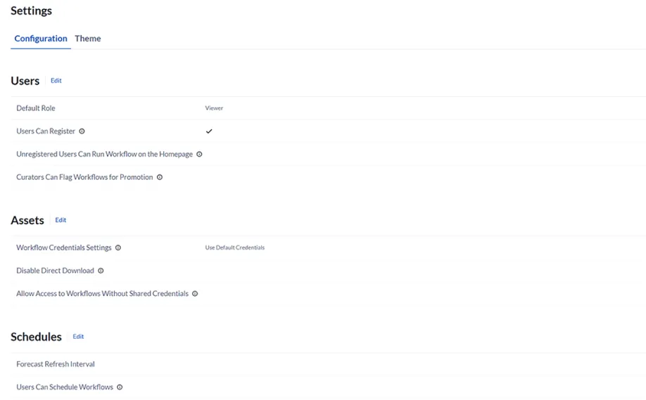 Enable users with permissions to share and update workflows created in Designer or develop rich analytic apps that can be delivered across the organization.
