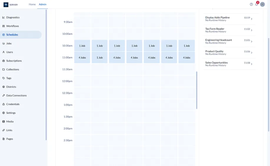 - Create workflows with Alteryx Designer-FIPS, and publish them to Alteryx Server-FIPS to schedule reporting and automated outcomes