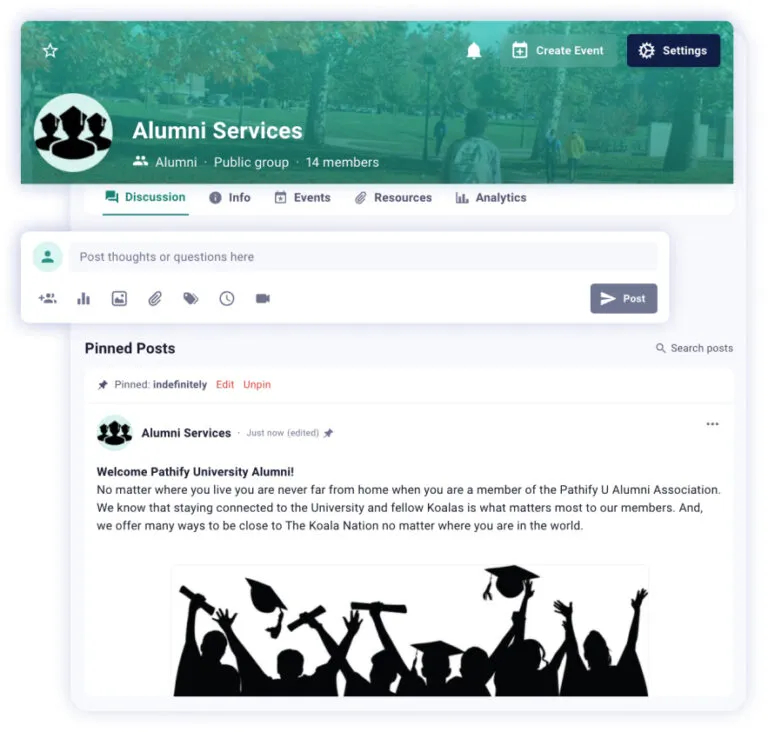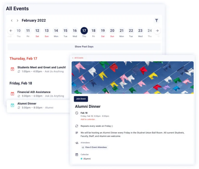 - Integrated Event Management: Promote, manage, and track alumni events with built-in tools.