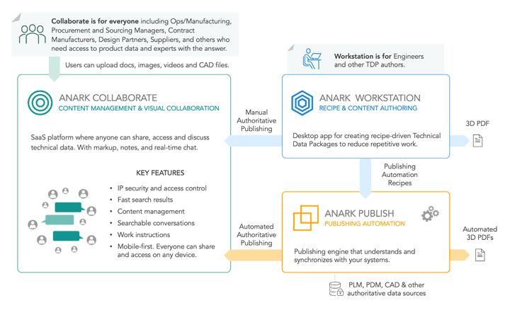 Anark Collaborate is a digital collaboration platform designed to streamline the exchange of engineering data among manufacturers, suppliers, and customers. It integrates with existing Product Lifecycle Management (PLM) and Computer-Aided Design (CAD) systems to provide a unified environment for sharing, discussing, and managing technical data. By embedding collaboration within the digital thread, Anark Collaborate aims to reduce errors, accelerate time-to-market, and enhance traceability across the product development lifecycle.