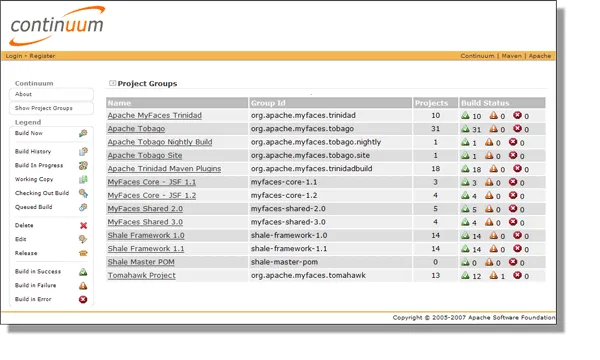 Apache Continuum is an enterprise-grade continuous integration server designed to automate the build and release process for software projects. It integrates with popular build tools and source control systems, offering a centralized platform for managing builds, releases, and notifications. Continuum helps development teams maintain consistent build environments and improve software quality through automated workflows and role-based access control.
