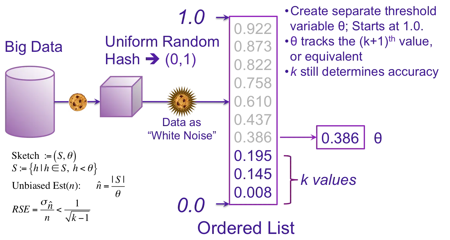 - Theta Sketches for set cardinality and set operations (union, intersection, difference)