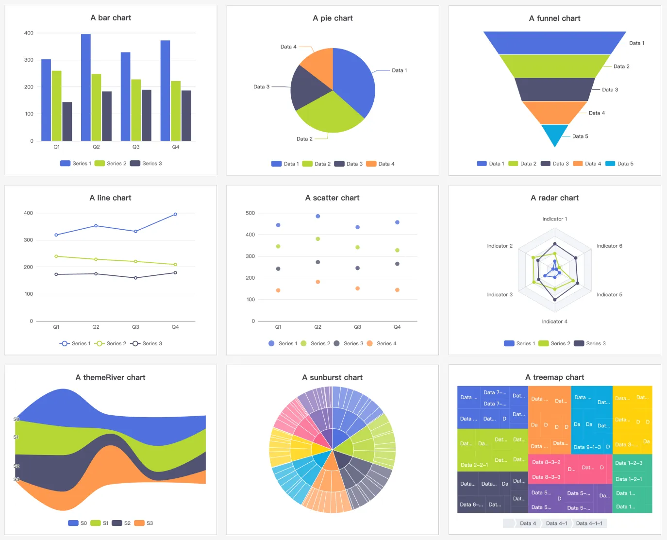 - Over 20 chart types including line, bar, pie, scatter, radar, heatmap, and more 1.