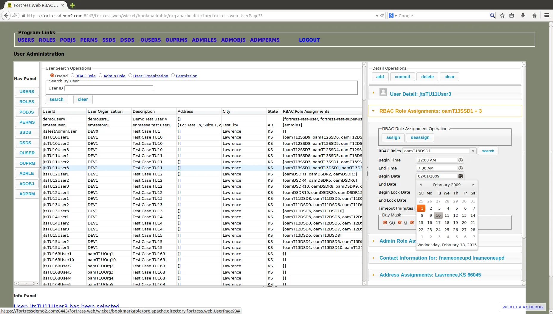Apache Fortress is a standards-based Role-Based Access Control (RBAC) system written in Java. It provides a comprehensive framework for managing authentication, authorization, and administrative security policies using LDAP as its backend. Fortress supports ANSI INCITS 359 RBAC and ARBAC standards, making it suitable for enterprise-grade identity and access management solutions. It integrates with ApacheDS, OpenLDAP, and Java web applications, offering APIs, REST services, and web interfaces for policy enforcement and review.